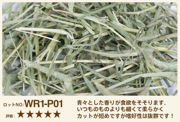 2024年度産初刈り入荷しました!初刈りらしい青々とした香りが食欲をそそります。いつものワードルーよりも細くて柔らかくカットが短めですが嗜好性は抜群です!