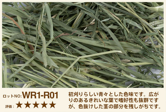 初刈りらしい青々とした色味です。広がりのあるきれいな葉で嗜好性も抜群ですが、色抜けしている茎の部分を残しがちです。